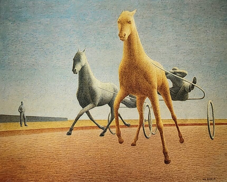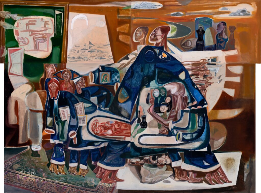 乌尔盖萨的图像语言在凝固与流动之间展开:人物仿佛被暂停在动作中,既在移动又受阻;空间看似稳定,却不断向外延展。他常用的赭石、深绿与深蓝如同从记忆深处沉淀出的矿物色,既带着故土的温度,也投下迁徙的阴影。展览不仅呈现作品,更像一次对当代人类处境的深度审视。他以接近身体经验与心理地景的方式,让观者切身感受到被迫移动、等待与承受的重量。