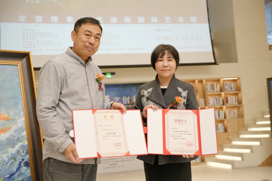 电魂网络副总裁、浙江省电魂公益中心理事长陈芳在致辞中表示,左晋先生以悟象艺术为桥梁,传递东方美学精髓与人文关怀,长期以来用艺术创作践行社会责任,其理念与电魂网络及电魂公益中心“文化赋能、公益向善”的初心高度契合。她还提到,这次展览不只是一场高水平的国际艺术交流活动,更是艺术与公益携手同行的新起点,未来电魂网络会继续用文化赋能城市发展,用公益传递温暖,和社会各界一起传递正能量。