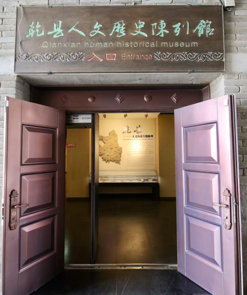乾县人文历史博物馆选址于古老的鼓楼建筑,共四层。一、二层为人文历史专题陈列馆和非物质文化遗产陈列馆,三、四层为文化艺术活动室。博物馆以“收藏、保护、展览、服务”为宗旨,现有藏品 428 ,其中文物 261 ,以汉代文物为主,集中展示了乾县深厚的历史积淀与文化特色。