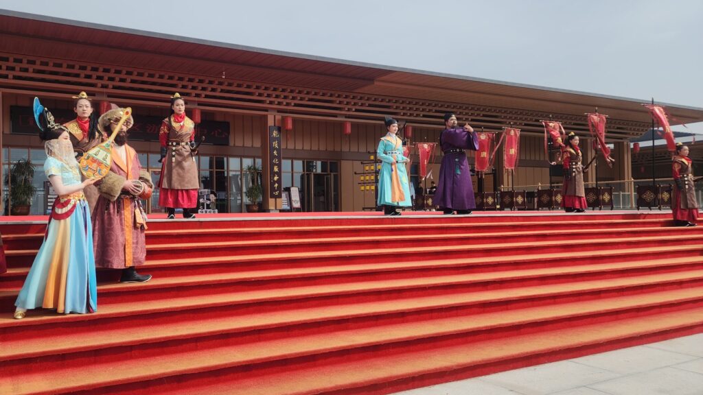 作为重要的物质文化遗产,乾陵本体并不属于“非物质文化遗产”范畴。但近年来,景区在保护文物本体的基础上,通过礼仪复原、服饰文化展示、数字化体验等方式,将与乾陵相关的传统礼仪文化、艺术形态和历史记忆以更具参与感的形式呈现出来,使文物遗址与非遗化表达形成互补关系,推动传统文化在当代“活起来”。
