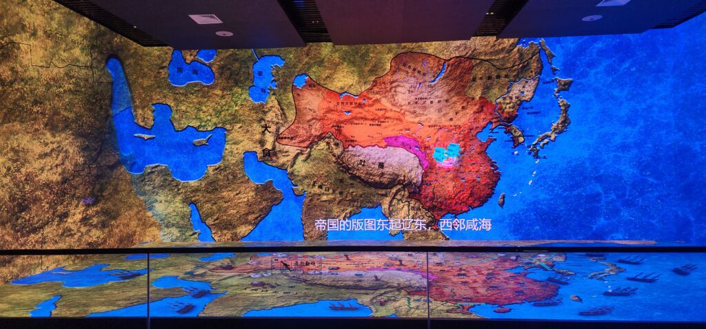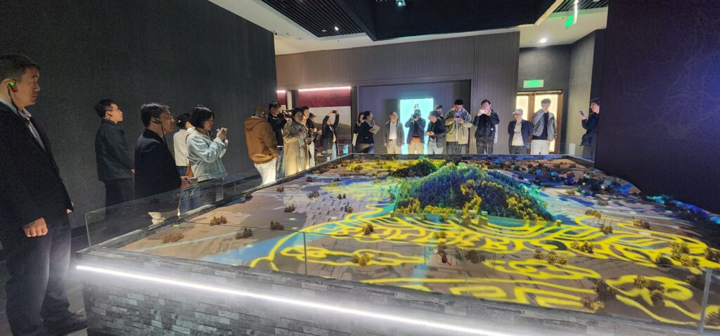 在数字化体验馆,记者们戴上VR设备,体验“大唐穿越记”沉浸式项目。通过虚拟现实技术,唐代壁画中的人物与场景被“激活”,游客可以在虚拟空间中与唐代人物“面对面”,走进盛唐市井与宫廷。数字化体验突破了传统展陈方式,让以壁画、石刻为代表的物质文化遗产与现代科技相结合,以更具时代感的形式走向年轻群体。景区方面介绍,数字化体验馆的建设,是乾陵探索“文物+科技”“遗产+体验”模式的重要尝试,未来还将推出更多基于壁画、石刻、礼制文化的数字化内容。
