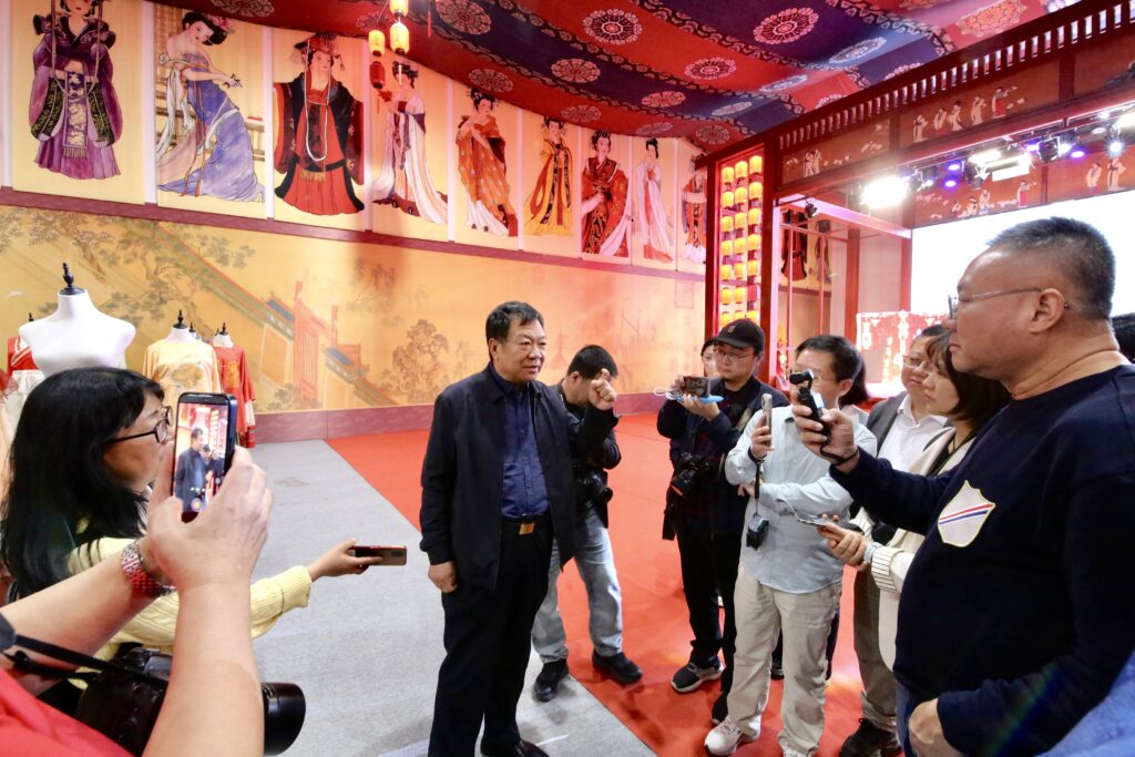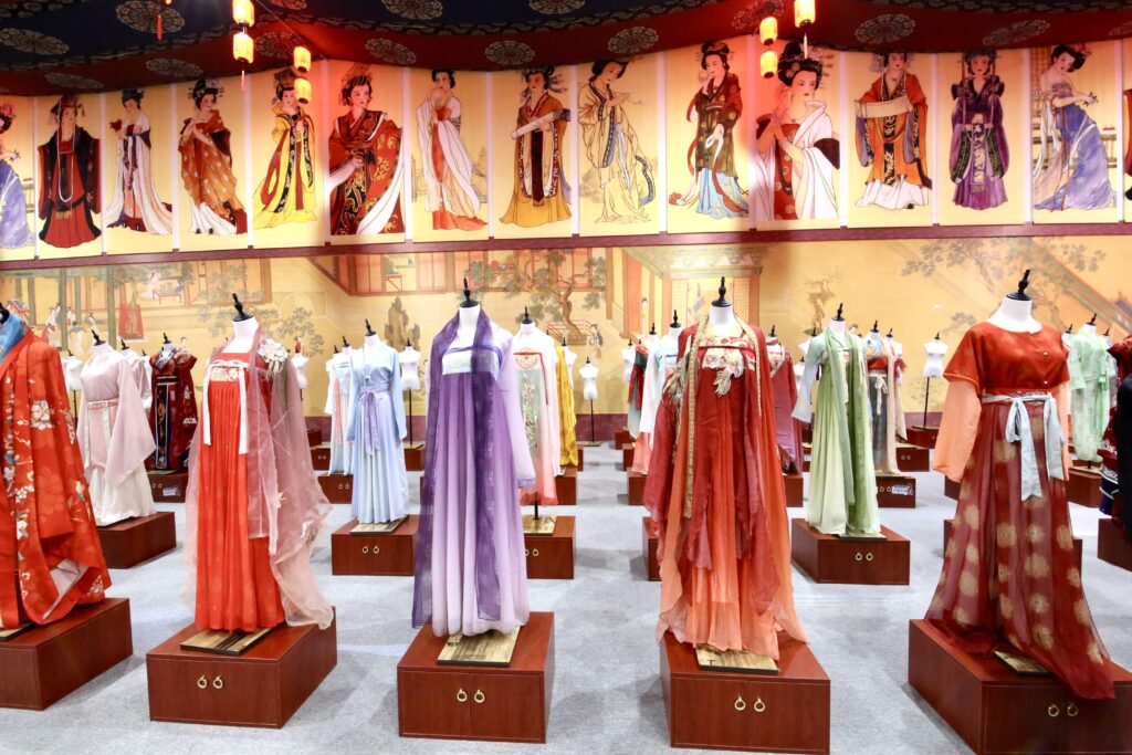 在展示区,大唐汉服背后的工艺体系被系统呈现,国家级非遗织造技艺,传统染色工艺,精湛的刺绣技法,以及平面裁剪的古法制衣体系,共同构成汉服的文化底色。展区从非遗精品到 百元左右的入门级汉服一应俱全,让游客在了解工艺的同时,也能以亲民价格体验汉服之美。“汉服不是古装,而是文化。”讲解员的介绍引发海外记者共鸣。