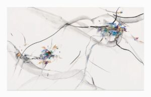 她惯于创作大尺幅的沉浸式绘画,以动势线条唤起对景观、身体、动作和思想的共鸣。她的混合抽象绘画融合包括道教和后结构主义、中国古代绘画传统、人体、舞蹈、武术和西方艺术史等多种影响和灵感。王茜瑶的绘画凭借对内心视角和身体感知来审视自身的东西方生存情境。